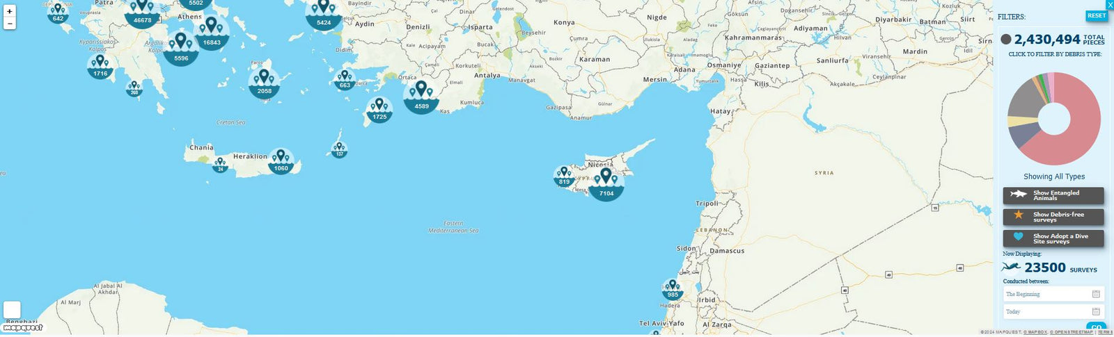 On the PADI Aware website you will find an interactive map with the latest debris data worldwide.
