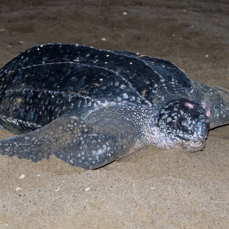 The leatherback turtle (Lat. Dermochelys coriacea) is mainly in search of food in the Mediterranean. However, the leatherback turtle does not lay eggs in the Mediterranean.